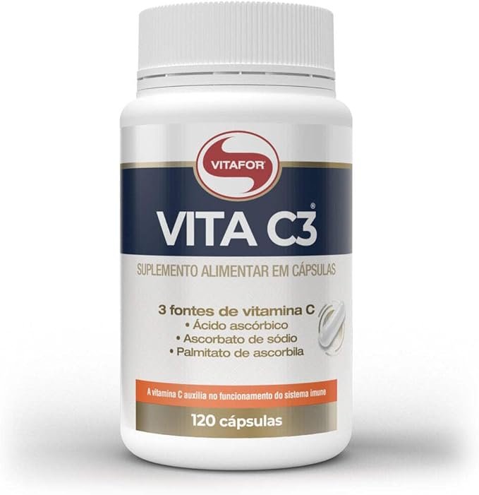 Suplemento alimentar de vitamina C em cápsulas. Suplemento alimentar composto pela combinação de três diferentes fontes de Vitamina C: ácido ascórbico, ascorbato de sódio e palmitato de ascorbila. Auxilia no funcionamento do sistema imune; É um antioxidante que auxilia na proteção dos danos causados pelos radicais livres; Auxilia na formação do colágeno; 1.916mg de Vitamina C (4.258% da IDR) por porção. Auxilia na regeneração da forma reduzida da vitamina E; Auxilia na absorção de ferro dos alimentos; Auxilia no metabolismo energético e no metabolismo de proteínas e gorduras.
