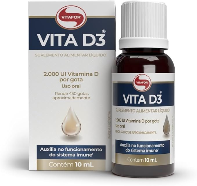 Suplemento alimentar de Vitamina D3 líquido. Suplemento alimentar rico em Vitamina D3 (Colecalciferol), disponível em cápsulas ou em gotas. Alta concentração de Vitamina D3 por cápsula -2.000UI por cápsula de 500mg. 2000 UI de Vitamina D3 por gota; Rende 450 gotas aproximadamente. Com TCM (Triglicerídeos de cadeia média) como veículo.
